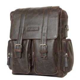 Спереди и по бокам накладные карманы, закрывающиеся ремешками с пряжками.