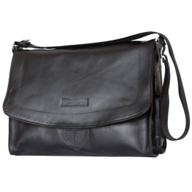 Сумка Carbola (Карбола) выполнена из натуральной толстой кожи черного цвета. Сумка состоит из основного отделения под клапаном. Также под клапаном накладной карман спереди. Плечевой ремень регулируется по длине и выполнен полностью из натуральной кожи. У сумки нет подклада...